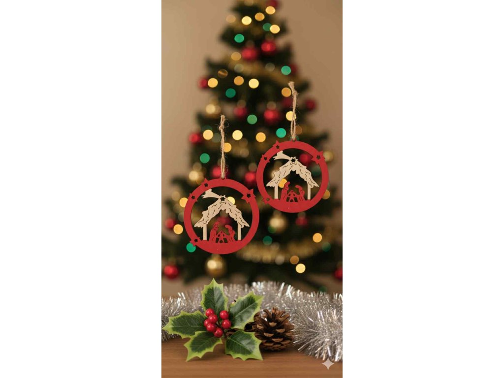 2x Dřevěná vánoční ozdobička "Betlém" 9cm