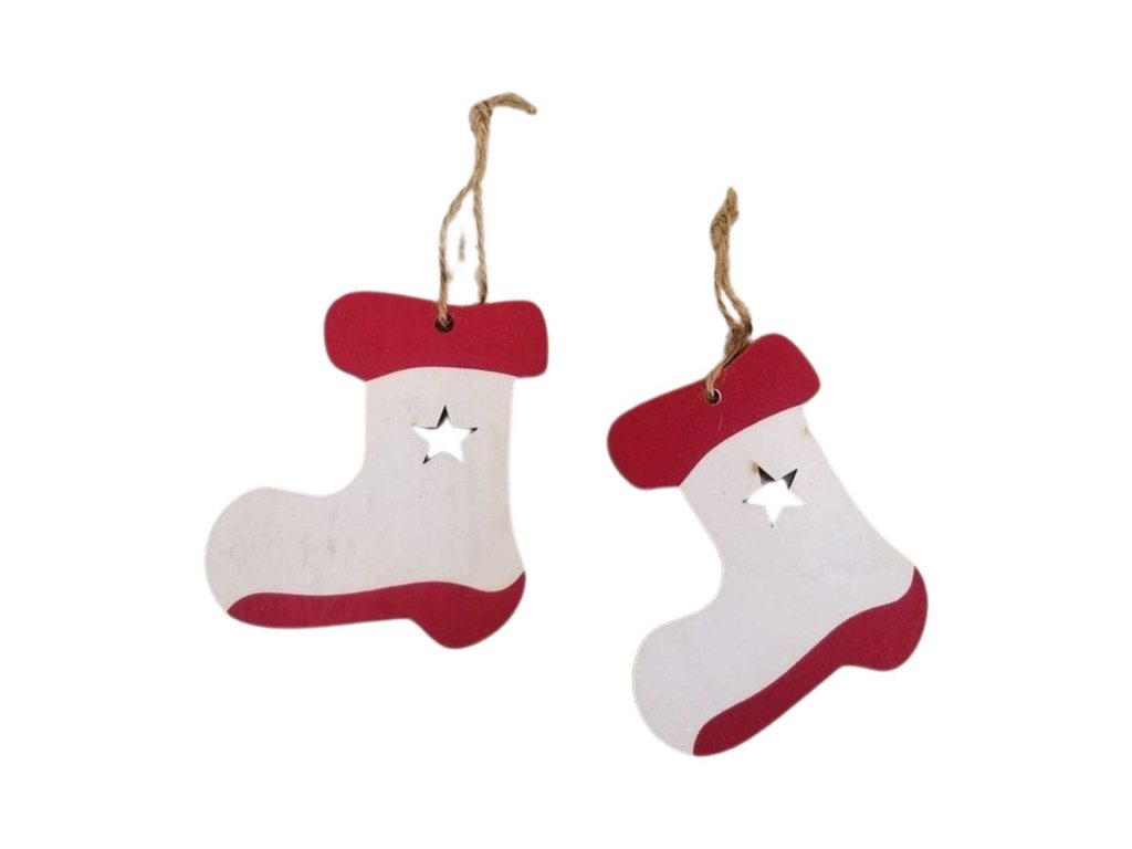 2x Dřevěná vánoční ozdobička "Bota" - bílá/červená