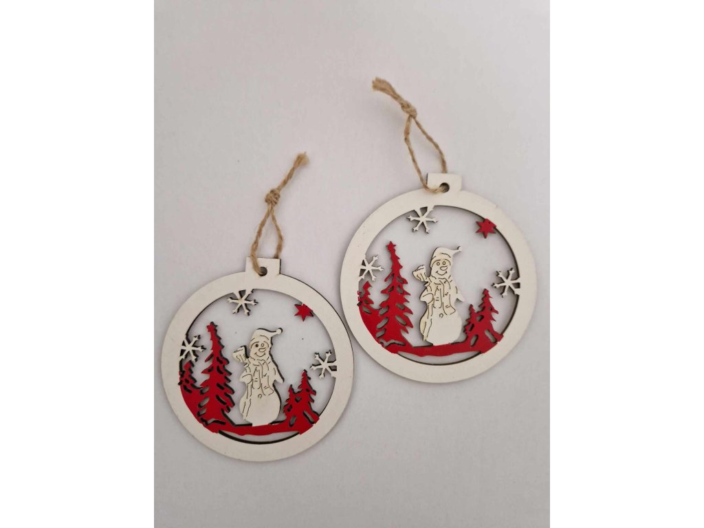2x Dřevěná vánoční ozdobička "Sněhulák" 9cm