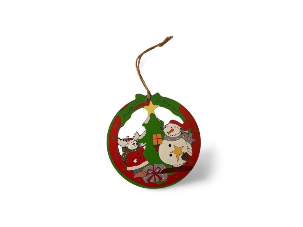 2x Dřevěná vánoční ozdobička "Sněhulák se stromečkem"