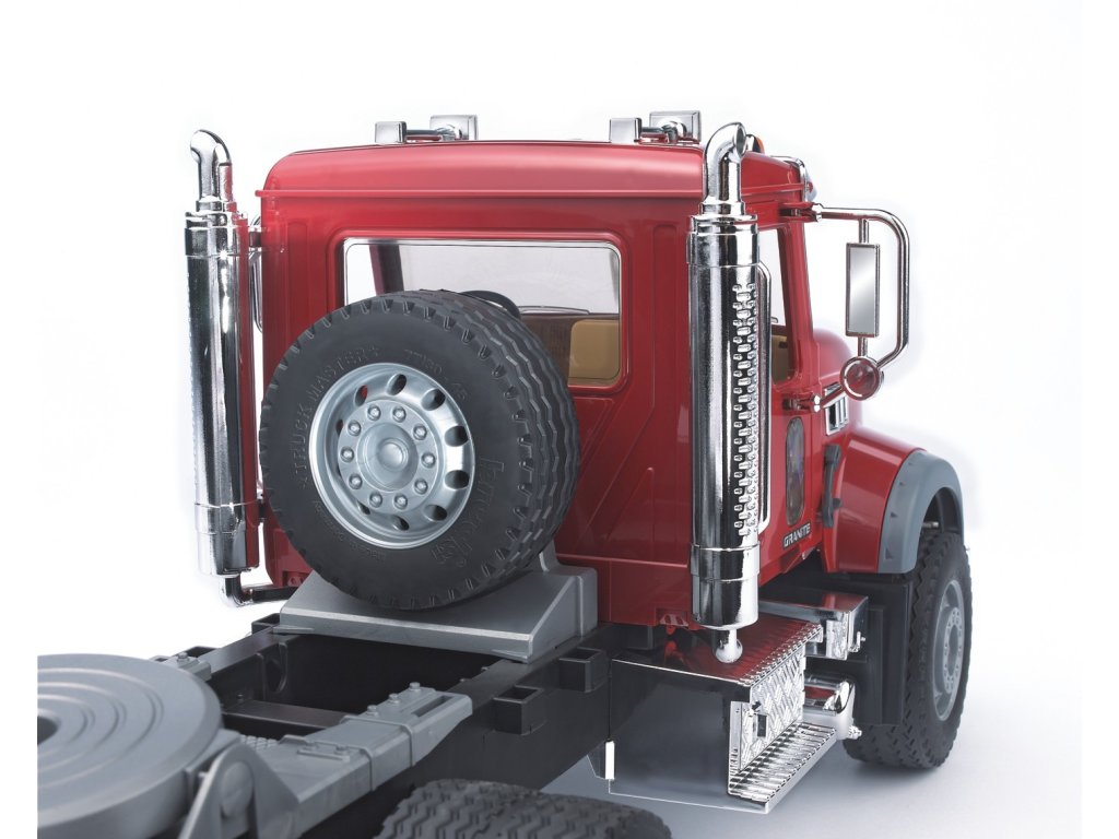 „Neskutečně“ realistická kabina řidiče s otevíratelnými dveřmi, výklopnou kapotou umožňující výhled na blok motoru, sklopnými zpětnými zrcátky a mnoha přídavnými díly s chromovým efektem je opravdovým lákadlem a ne jen pro fanoušky truckerů. Důležitým detailem výbavy jsou nastavitelné pojistné lišty pro zajištění přepravovaných vozidel. Nájezdové rampy lze sklopit. Profilované pneumatiky dokreslují obrázek Rýpadlo-nakladač má plně funkční přední lopatový bagr, který lze zaaretovat v nejvyšší poloze. Přední lopata je sklopná a sedadlo řidiče je otočné o 360°. Volant je také pohyblivý. Zadní rypadlo je také plně funkční a lze jej horizontálně posouvat, otáčet o 180° a zaaretovat. Dvě výsuvné podpěry poskytují rýpadlo-nakladači bezpečné držení a běhouny doplňují obrázek.