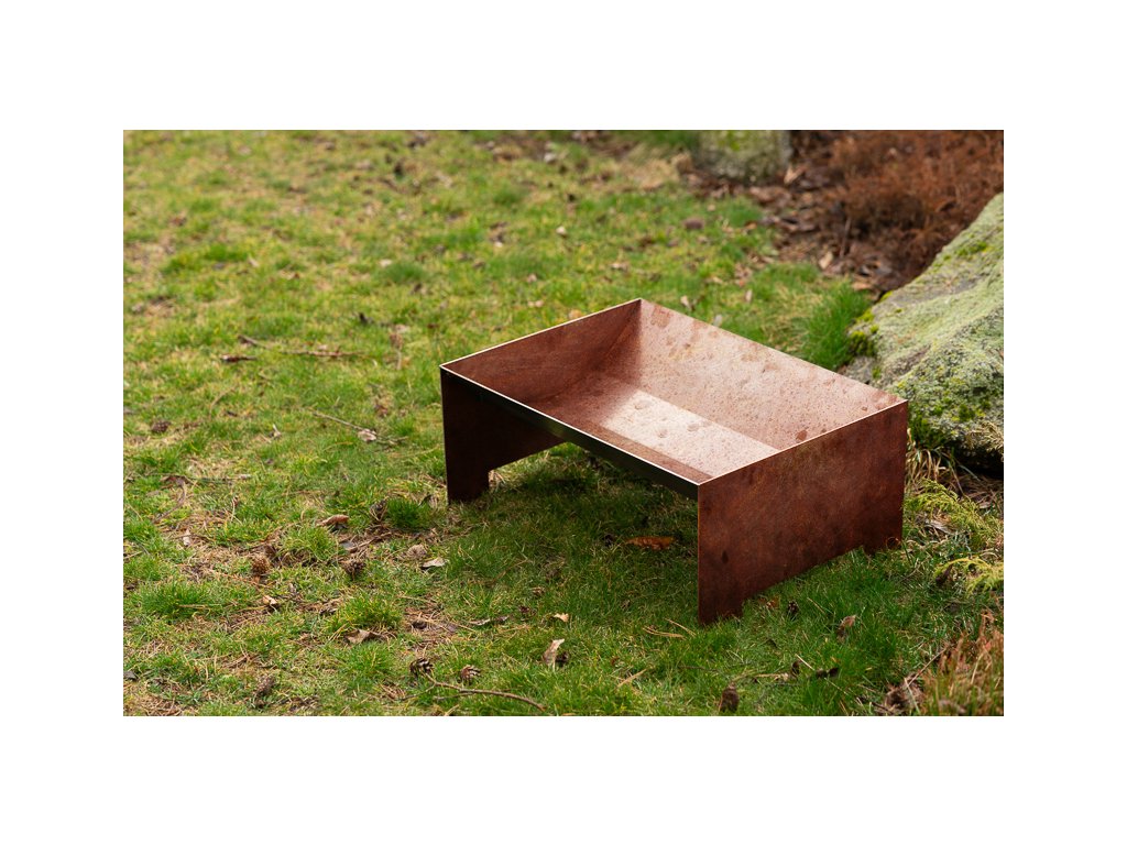 Konstrukci ohniště tvoří dno z jednoho kusu plechu a dvě rovné, robustní bočnice. Ty jsou pevně společně svařené, čímž vzniká kompaktní, stabilní a zároveň vizuálně čistá a elegantní forma, která ladí s jakýmkoliv exteriérem – od soukromých zahrad až po veřejné prostory. Bočnice navíc díky svému tvaru přispívají k omezení přenosu tepla směrem dolů.