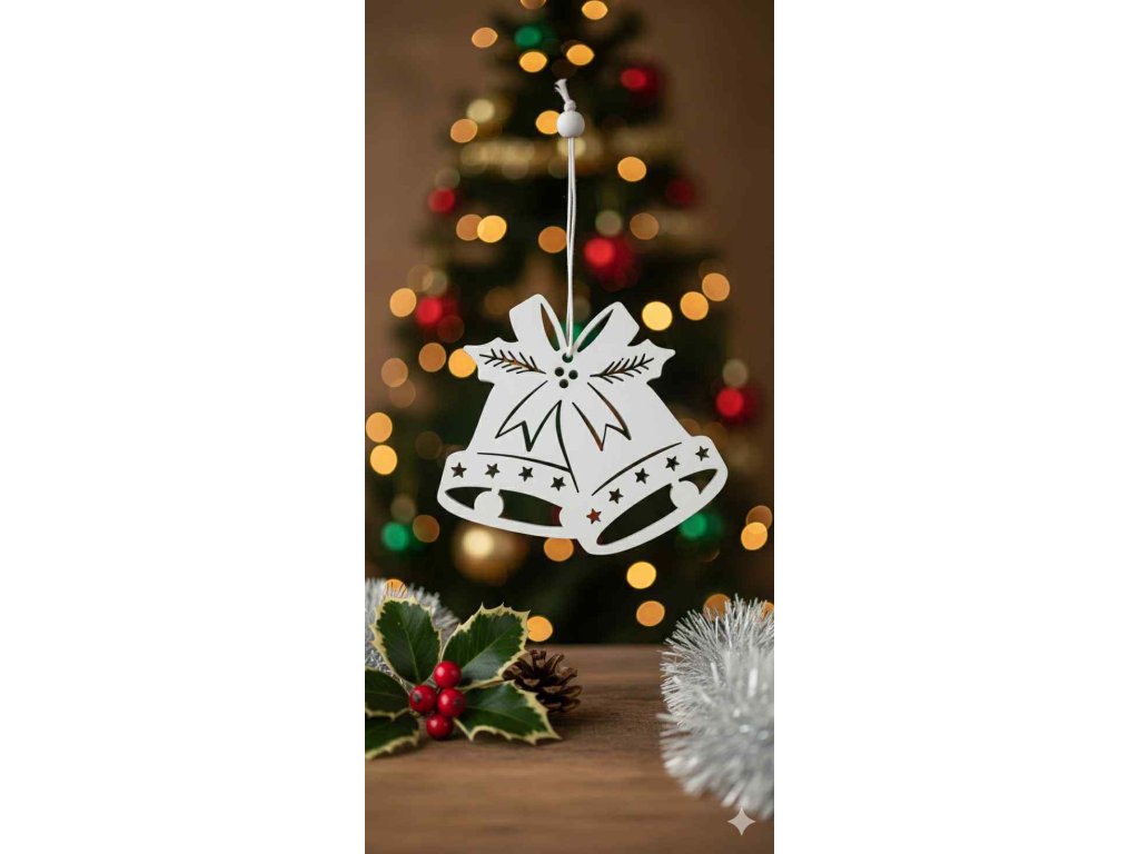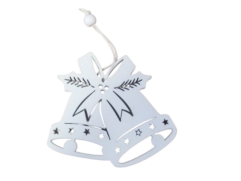 Dřevěná ozdobička zvonečky (10x12cm) - bílá