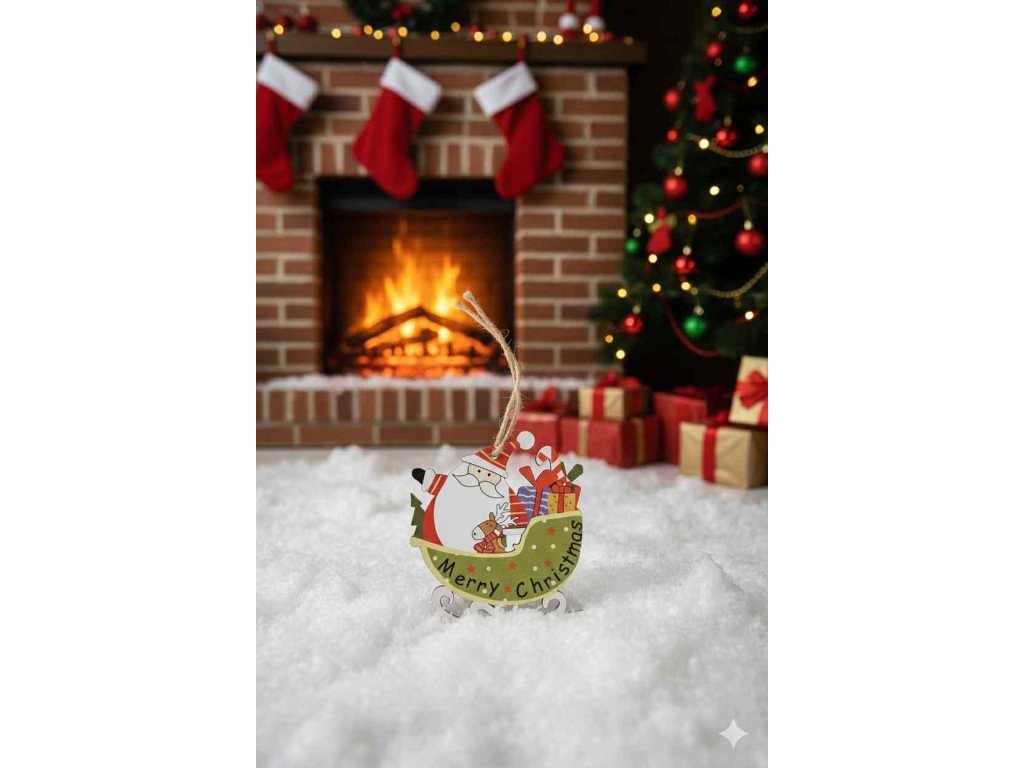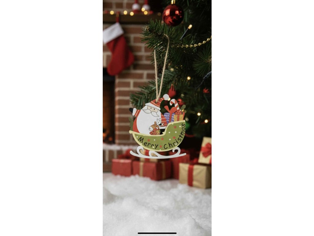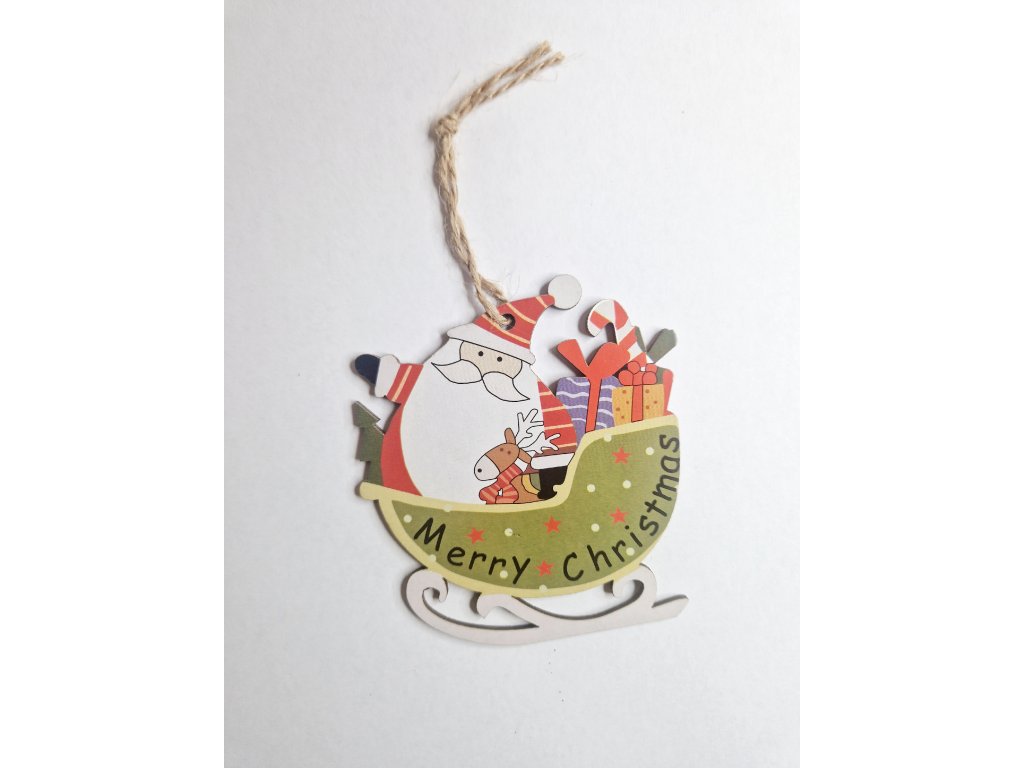 Dřevěná vánoční ozdobička "Santa se sáněmi"
