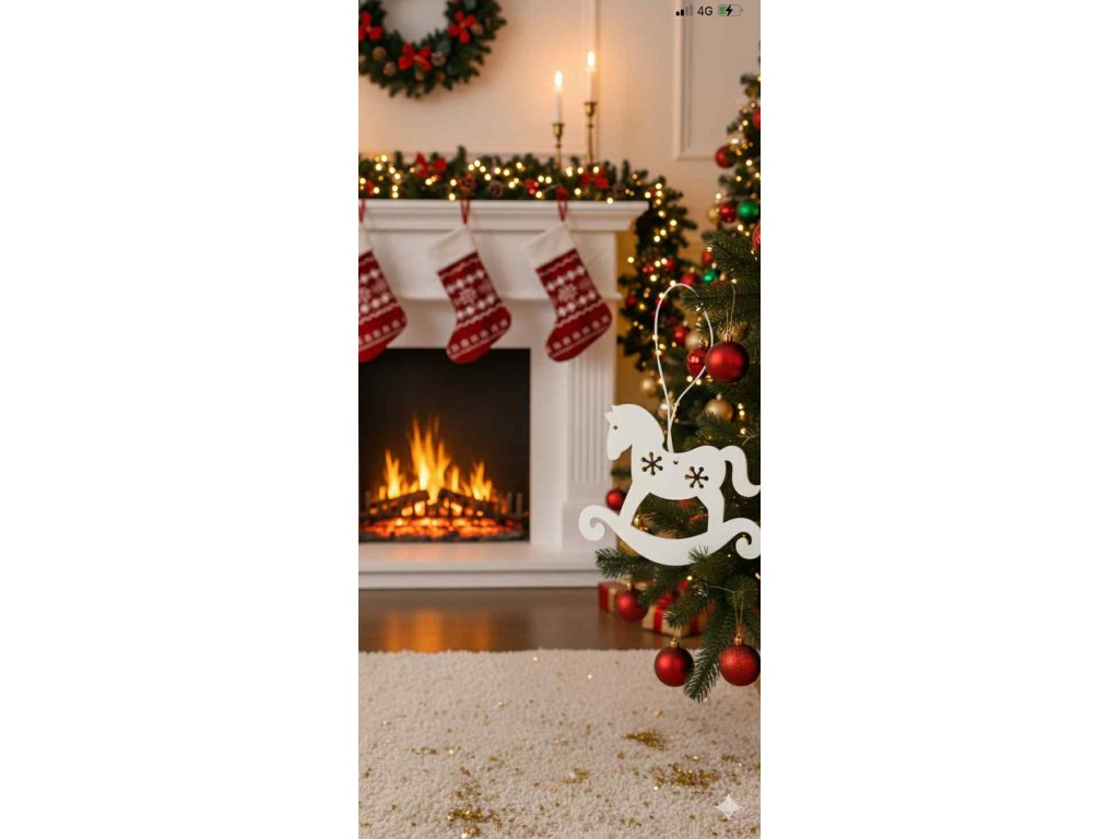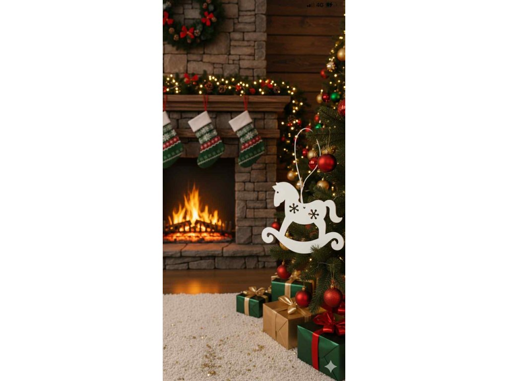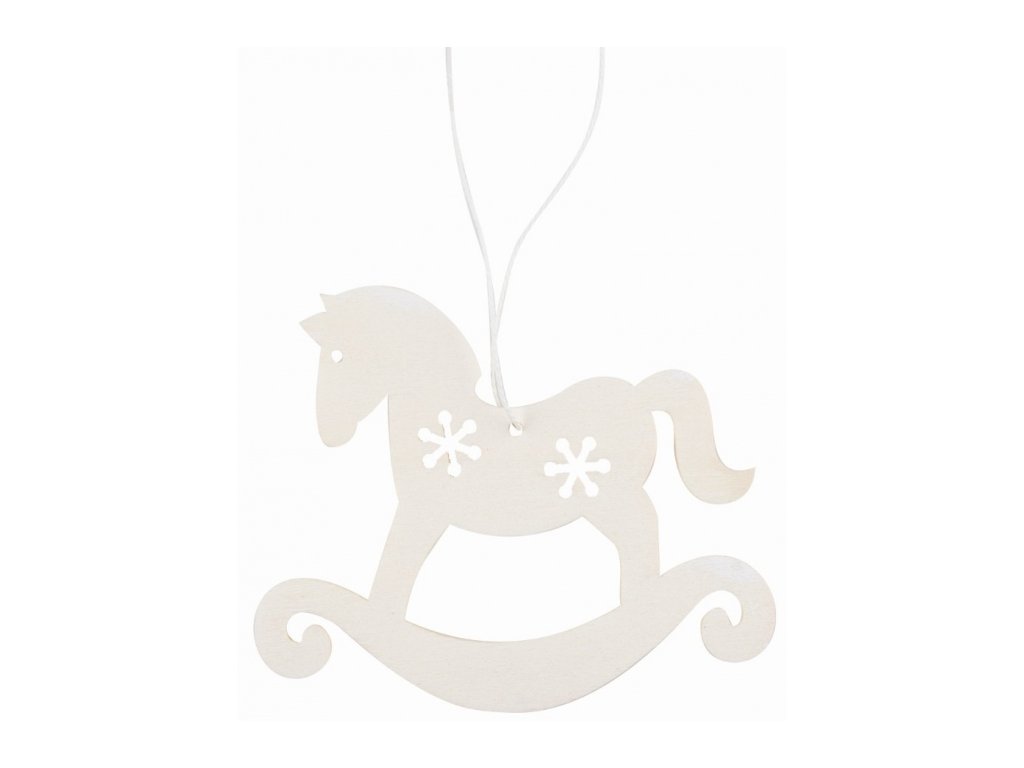 Dřevěná vánoční ozdobička "Vánoční houpací koník" (10x8,5cm) - bílá