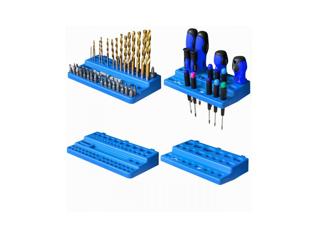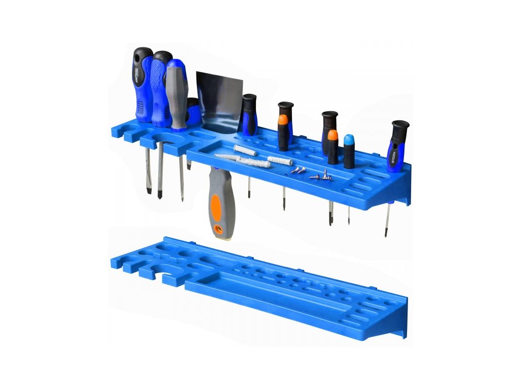 - Všechny držáky na nářadí a police zobrazené na fotografiích jsou součástí sady.