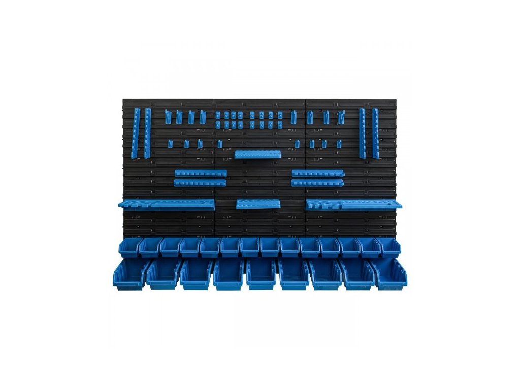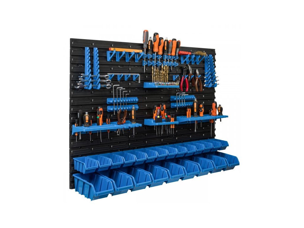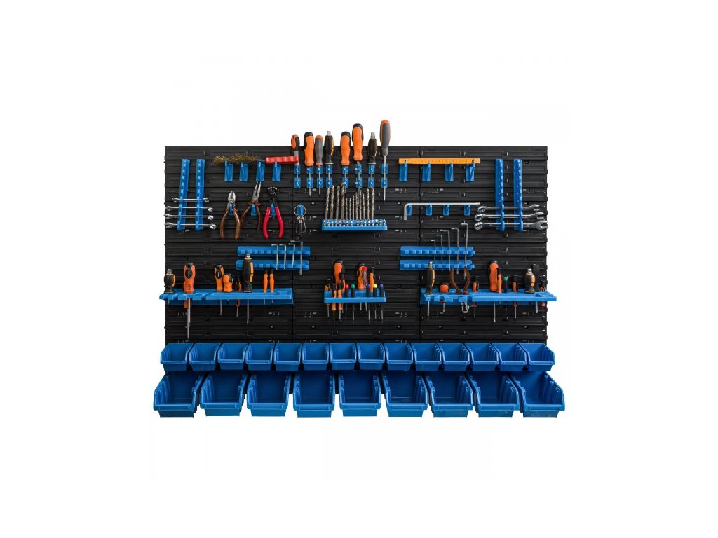 Nástěnná deska, organizér na nářadí 115x78 cm + 23x box, barva: černá/modrá