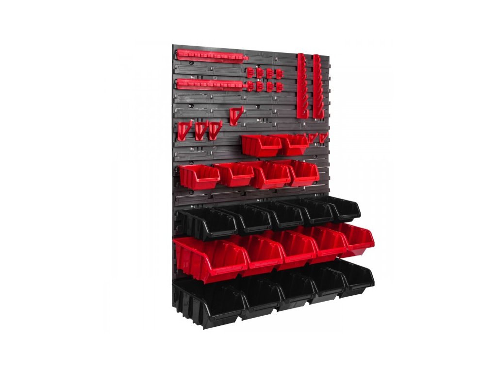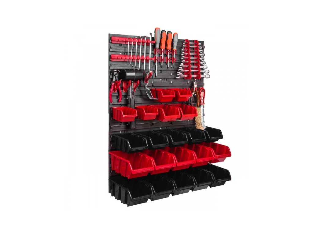 Nástěnná deska, organizér na nářadí 57,6x78cm + 21x box, barva: černá/červená
