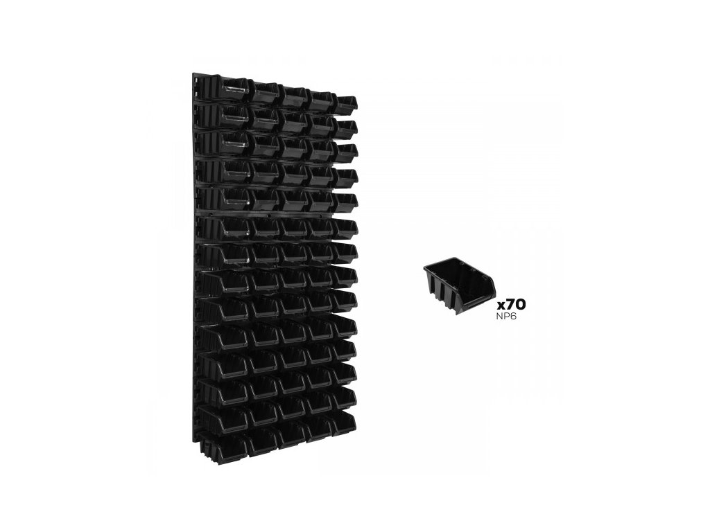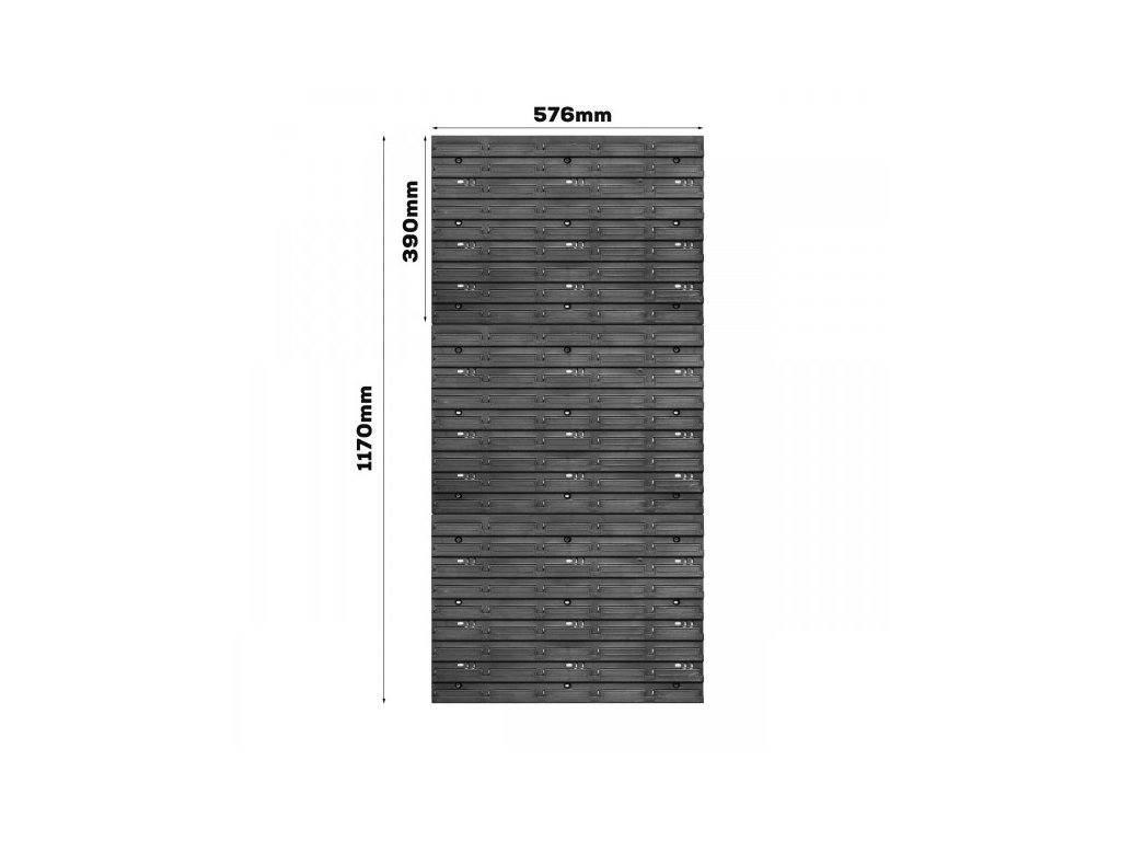 Nástěnná deska, organizér na šrouby 57,8 x 117cm +70x box, barva:černá