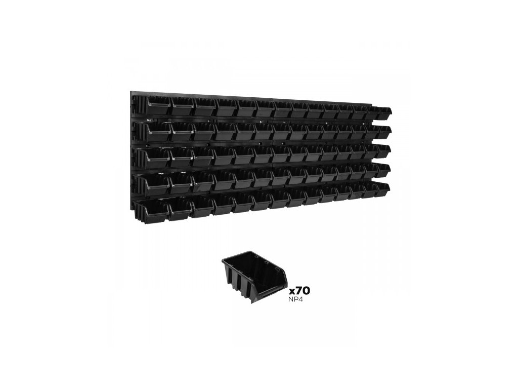 Nástěnná deska, organizér na šrouby 115 x 39cm +70x box, barva:černá