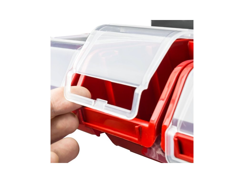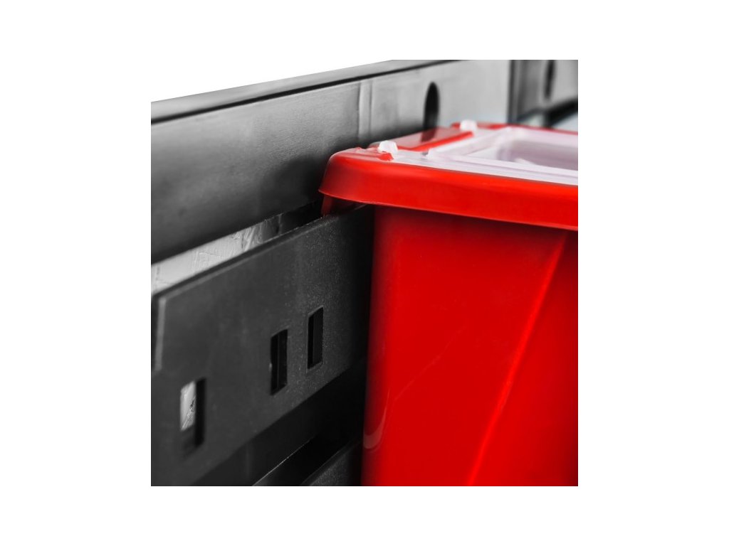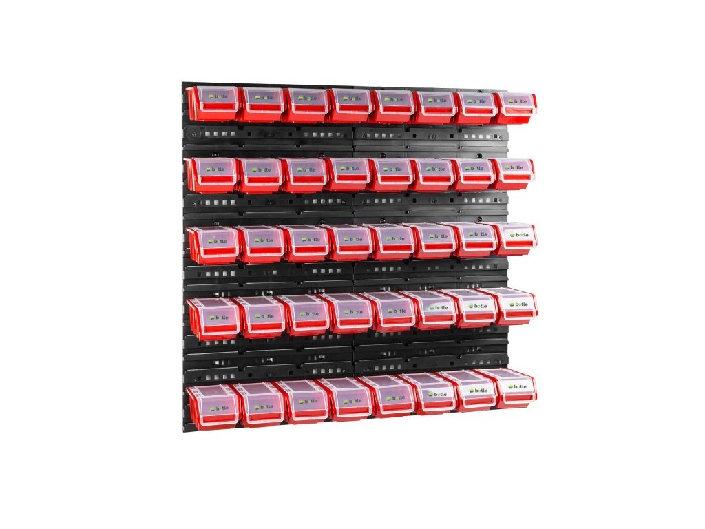 Nástěnná deska, organizér na šrouby 80x80cm + 40x box s víky, barva:černá/červená