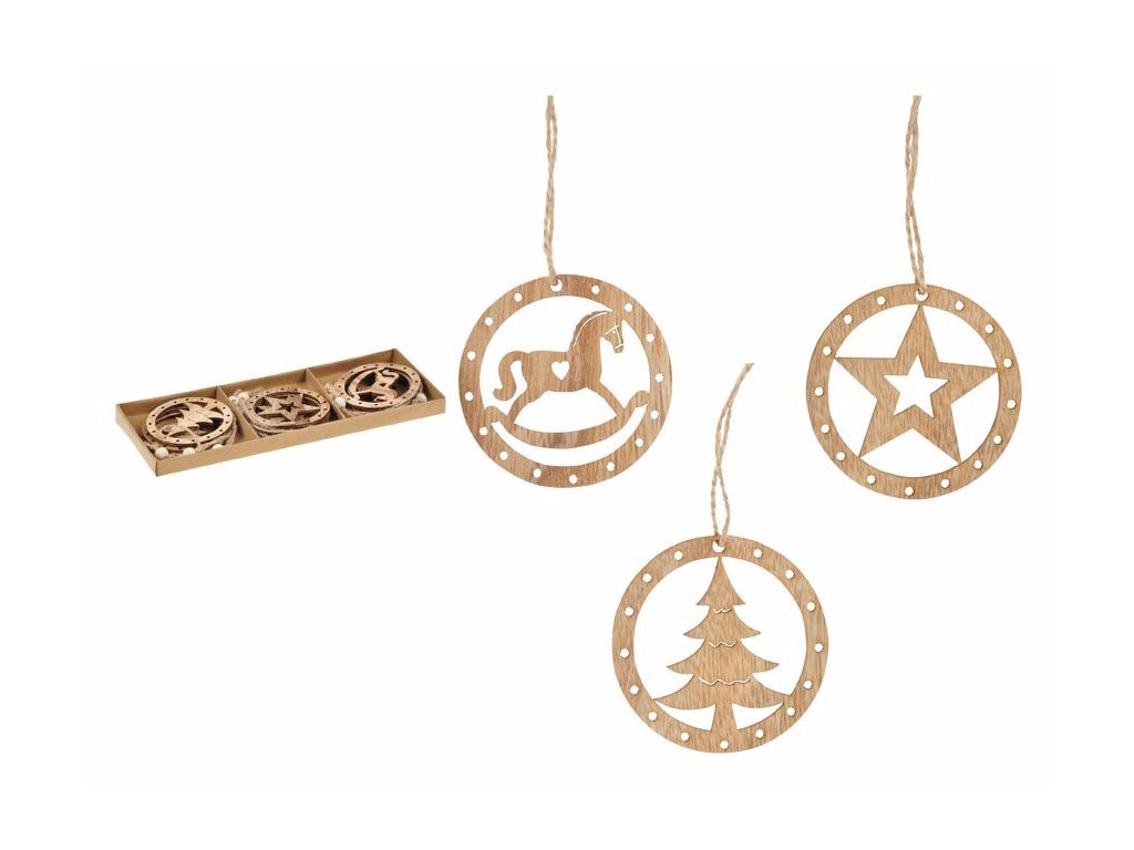 Set dřevěných ozdob, 3 druhy, celkem 9 kusů