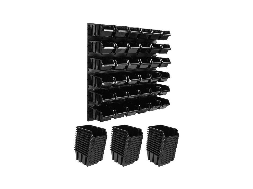 Nástěnná deska, organizér na šrouby 77,2x780cm + 36x box, barva:černá