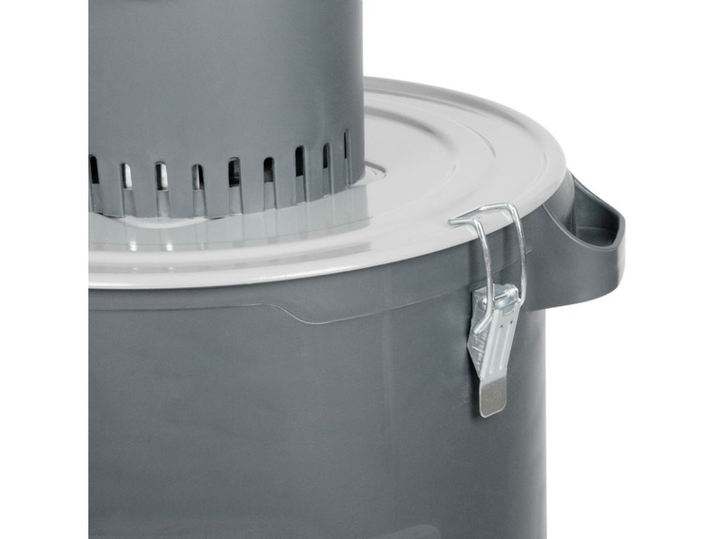 Objemný 60l barel: Našrotované krmivo padá přímo do velkého plastového zásobníku s rukojeťmi, což minimalizuje prašnost a usnadňuje manipulaci.