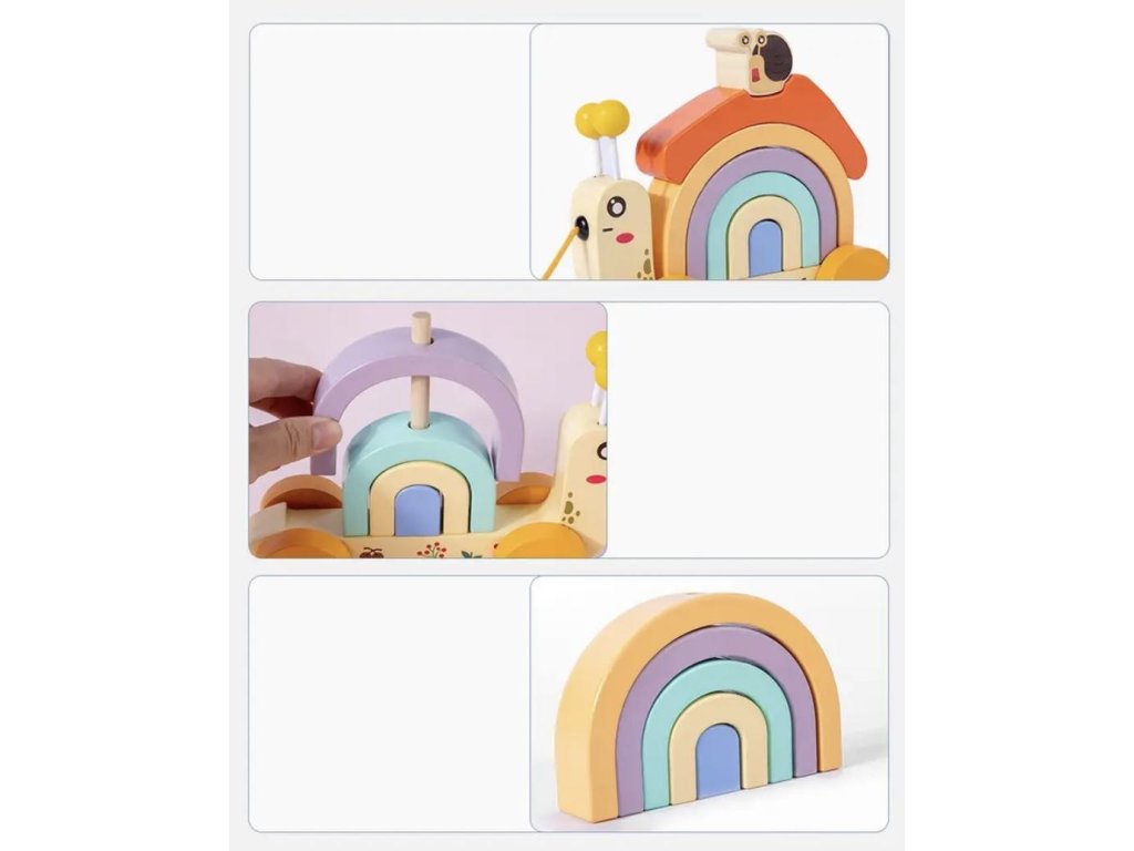 Duhový šnek" je výjimečná dřevěná hračka pro děti, která přináší zábavu a současně podporuje rozvoj smyslových, hmatových a logických dovedností. Tato kvalitní vzdělávací hračka je inspirována metodou Montessori a je navržena tak, aby podporovala dětský vývoj.