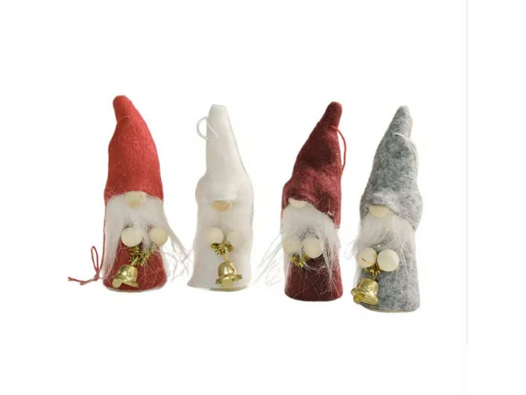 Sada 4 kusů Vánočních skřítků - v setu několik barev. Výška cca 7cm, možnost zavěšení.